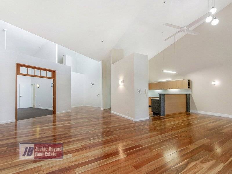 "TENERIFFE VILLAGE" Positioned conveniently right in the heart of Teneriffe this large 181m2 top floor warehouse apartment has a quiet, peaceful leafy outlook. Ready for your immediate occupation just add your own personal touches to increase the value. Windows and doors with timber shutters compliment the red brick walls adding rich rustic character along with soaring saw tooth roof with adjustable louvres for maximum ventilation and light. Extensive open plan living and dining areas combined with timber floors create a feeling of expansive luxury. A generous well designed kitchen is central to the living / dining areas and is ideal for entertaining. Unique loft main bedroom with ensuite and walk in robe offers a variety of creative options. Bedrooms 2 and 3 are well proportioned with large built in robes.